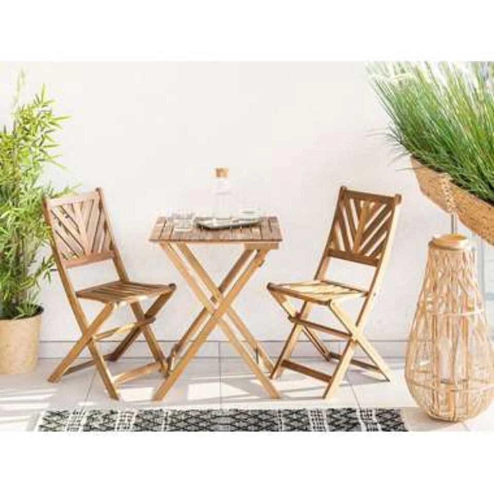 Acaciahouten balkonset. Met dit compacte balkonset creëer je overal een gezellige plek om te socializen of te tafelen. Perfect voor woningen met beperkte ruimte, zoals balkons of kleine achtertuinen. De meubels zijn volledig opklapbaar voor eenvoudige opslag. Het is gemaakt van sterk acaciahout voor een natuurlijke uitstraling en vormt een mooie aanvulling op het groen van de tuin. Houten meubels hebben een tijdloze uitstraling en passen bij vele decorstijlen, van ouderwets tot eigentijds.
