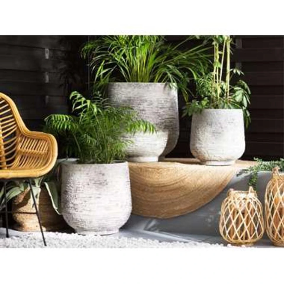 Ronde bloembak in lichtgrijze steenlook. Een plantenpot die elke tuin, balkon, terras of huis prachtig siert. De plantenbak is robuust en UV-bestendig en gemaakt van all-weather vezelklei, waardoor hij licht genoeg is om moeiteloos te bewegen en de perfecte plek voor je planten te vinden. De pot heeft een klassieke, ronde vorm en een steenachtige afwerking in lichtgrijs voor een meer rauwe en natuurlijke uitstraling.