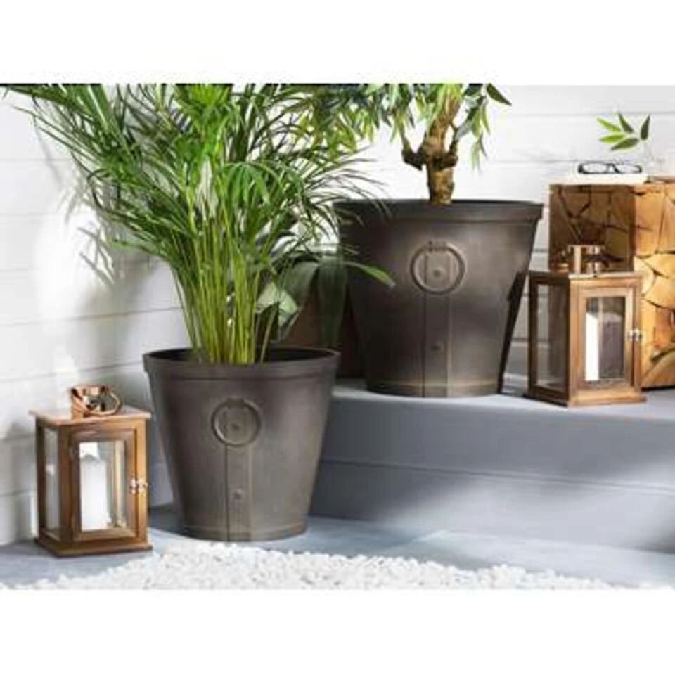 Rustieke bloempot in roestlook. Geef je planten en bloemen een vintage-achtige setting en zet ze op de voorgrond op je balkon, terras of tuin. Deze tweedelige pannenset toont verweerde afwerking en voegt zeker een onderscheidend karakter toe aan elke buiten- of binnenruimte, waar je deze ook nodig hebt. Gebouwd met een sterk mengsel van stenen en glasvezel is het bestand tegen gematigde weersomstandigheden en schadelijke zonnestralen.