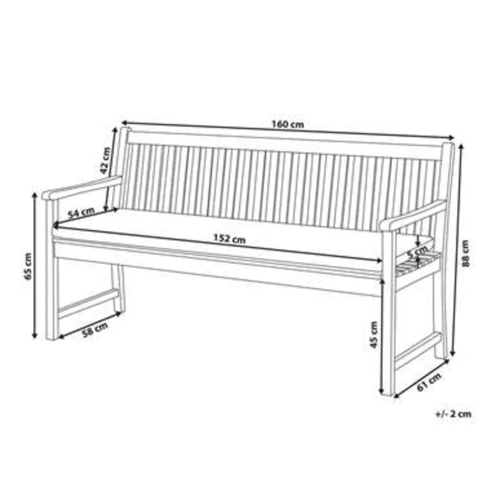 Moderne tuinbank van duurzaam acaciahout met kussen. De bank is gemaakt van zorgvuldig geselecteerd, ecologisch en duurzaam hout. Perfect voor jouw zomertuinfeest of voor een mok warme chocolademelk op een heerlijke herfstmiddag. De bank wordt geleverd met een kleurrijk zitkussen en wordt daarmee een echte blikvanger in jouw tuin.