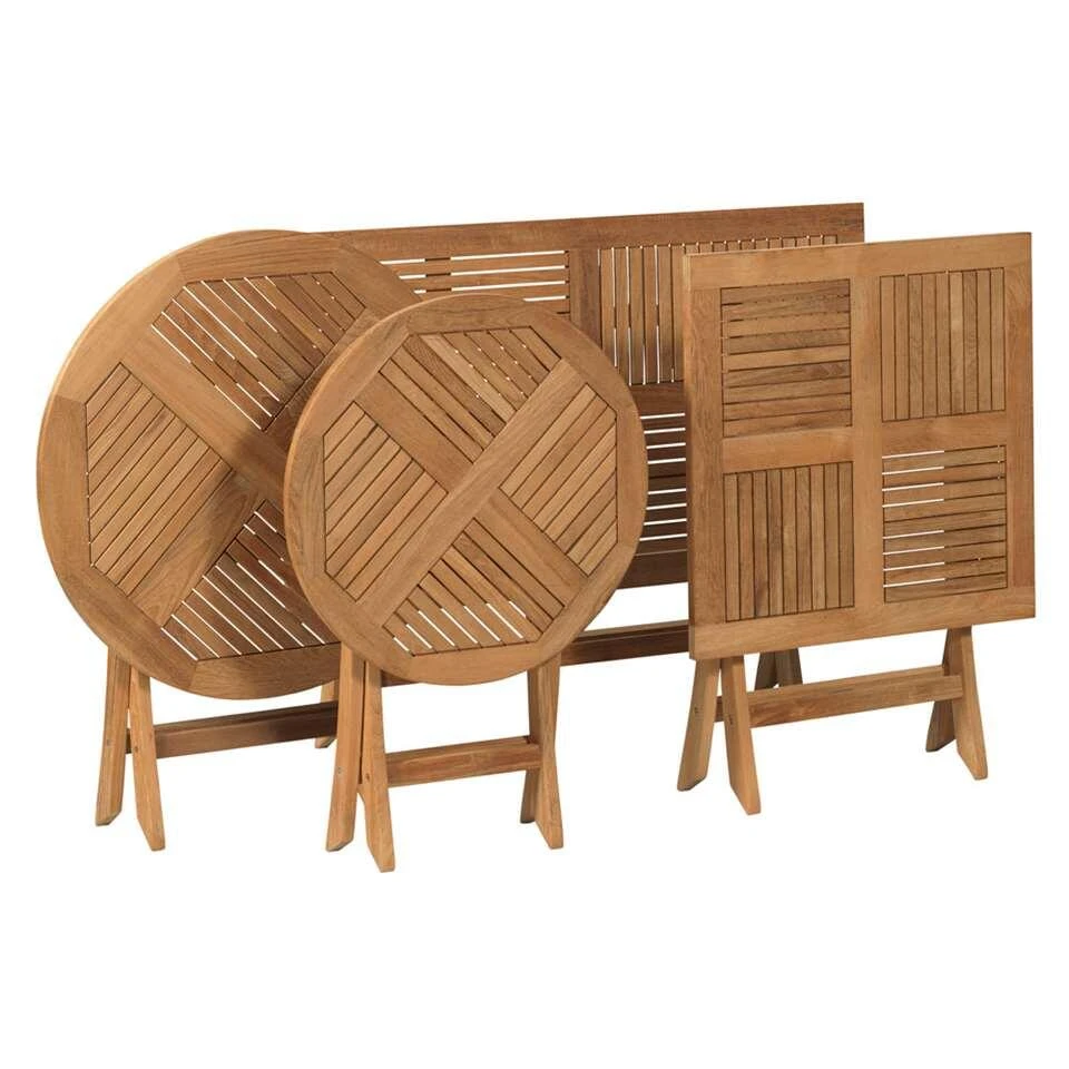Exotan klaptafel rond is een handige klaptafel, gemaakt van teakhout. Met zijn fijne afmeting van Ø45×45 cm past hij overal, zelfs in de wat kleinere tuin!