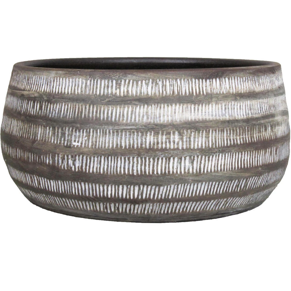 Bloempot schaal in de kleur mat terra bruin gemaakt van keramiek voor een kamerplant – H14 x D29 cm. Deze ronde bloempot uit de Lena serie met geribbelde afwerking is een bloempot/plantenpot basic voor elke huiskamer. Gemaakt van terracotta/keramiek. Binnen gebruik. Diameter: 29 cm. Hoogte: 14 cm.