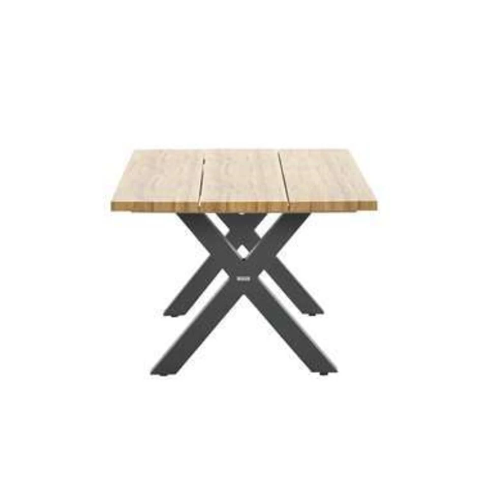 Op zoek naar een mooie tuintafel met het uiterlijk van teakhout en een robuust onderstel? Dan is de Zadar tafel ideaal geschikt voor jouw! Deze tuintafel heeft een teak look aluminium tafelblad en is leverbaar met verschillende onderstellen. Een prachtige tuintafel met weinig onderhoud! Deze tuintafel is goed te combineren met verschillende soorten tuinstoelen. De Zadar tuintafel van kwaliteitsmerk Garden Impressions is vervaardigd uit een onderhoudsvrij en weerbestendig aluminium frame met een stevige donker grijze poedercoating. Deze laag zorgt ervoor dat het frame kras en stootvast is. Het tafelblad is voorzien van een teakhout look, maar is gewoon van aluminium. Dit geeft de tuintafel een uniek uiterlijk en is gemakkelijk af te nemen met een doekje. Het tafelblad heeft een afmeting van 180×100 cm en heeft een X-style tafelframe. Aluminium is schoon te maken met een sopje met groene zeep en lauw water. Voor het drogen kun je het beste een pluisvrije doek gebruiken. Na ontvangst dient de tuintafel nog gemonteerd te worden. De poten dienen nog aan het blad gemonteerd te worden. Dit is op een gemakkelijke manier zelf te doen door de bijgeleverde handleiding en montage benodigdheden. De Zadar serie bevat verschillende afmetingen tafelbladen, maar ook verschillende onderstellen. Zo heb je de keuze uit een afmeting van 180 x 100 cm of 220 x 100 cm.
