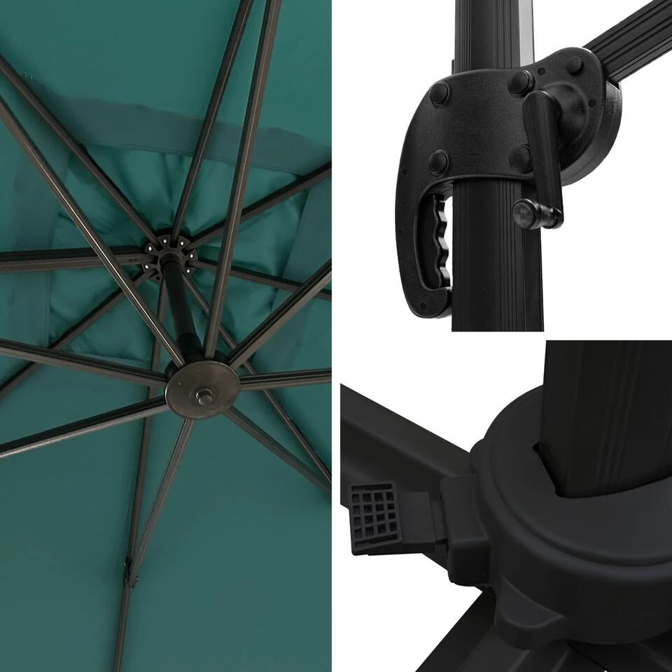 Geniet vol vertrouwen van gezellige momenten met de MOLOKAI parasol. Hij is kantelbaar en draaibaar en beschermt u perfect tegen de zonnestralen. Met een grote spanwijdte en een doek met een hoge UV-dichtheid zal hij uw gasten beschermen, zelfs degenen die aan het einde van de tafel zijn geïnstalleerd. Bovendien zal zijn stijlvolle en elegante look die zonnige dagen nog aangenamer maken. Vergeet niet om ballastplaten toe te voegen om de off-centre parasol stevig op zijn plaats te houden.
