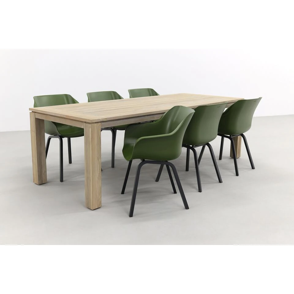 De Hartman Sophie Element/Rome tuinset heeft een robuuste uitstraling en is dan ook een echte eyecatcher in je tuin. Aan deze tuinset geniet je van een gezellige barbecue met vrienden of familie. De ruime tuintafel met zijn afmetingen van 240 x 100 cm. biedt plaats aan 6 personen. Je kan eventueel nog 2 extra stoelen aanschuiven aan de kopse kanten van de houten tuintafel, zodat je met 8 personen kunt dineren.