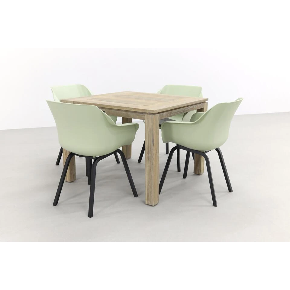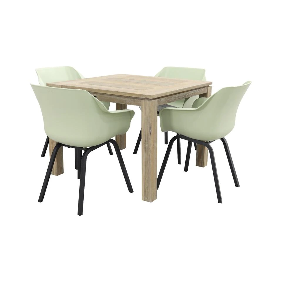 Wil jij graag een tuin of balkon met een frisse uitstraling? Dan is deze Sophie/Rome tuinset een perfecte aanvulling! De Sophie Element tuinstoelen van Hartman hebben een mintgroene kleur. Deze kleur ‘French Green’ zorgt echt voor een frisse wind in jouw tuin. De Rome tuintafel voegt hier helemaal aan toe door zijn grijze kleur. Deze kleur is middels een grey wash aan het teakhout aangebracht. De vierkante tuintafel heeft een lengte van 100 cm. waardoor deze tuinset ook geschikt is voor een kleinere tuin of balkon. Ideaal wanneer je niet zoveel ruimte hebt om te vullen. Zie jij deze tuinset al bij jou staan? Bestel dan direct online!Â