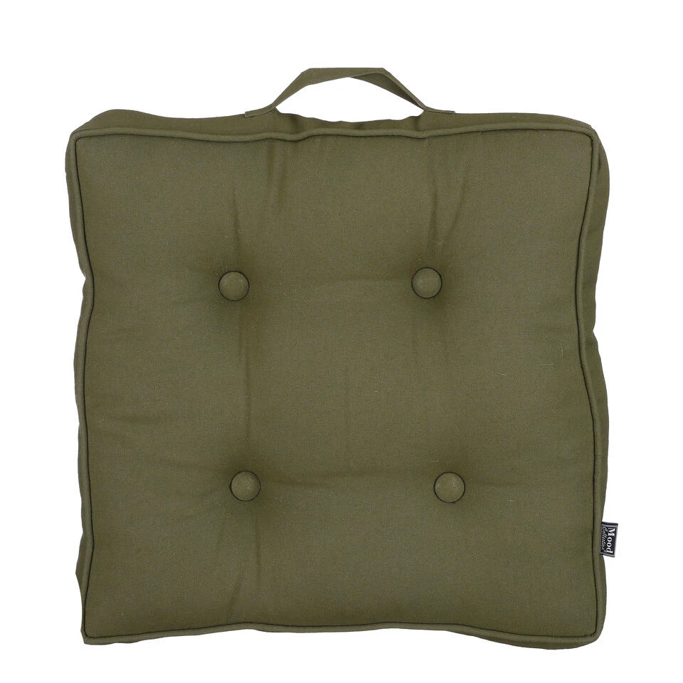Dit Tivoli matraskussen uit de In The Mood Collection zorgt voor nog meer zitcomfort. Het zachte tuinkussen is gemaakt van 100% katoen en is vierkant van vorm. De kleur van dit zitkussen is donkergroen en heeft een afmeting van 45x45cm en een dikte van 7 cm. Matraskussen Tivoli is gecapitonneerd wat zorgt voor een luxe effect en is uitgerust met een handgreep. Door de 4 knopen in het kussen zal de vulling goed op zijn plek blijven en zal het kussen zijn vorm beter behouden. Het zitkussen is verkrijgbaar in diverse kleuren.