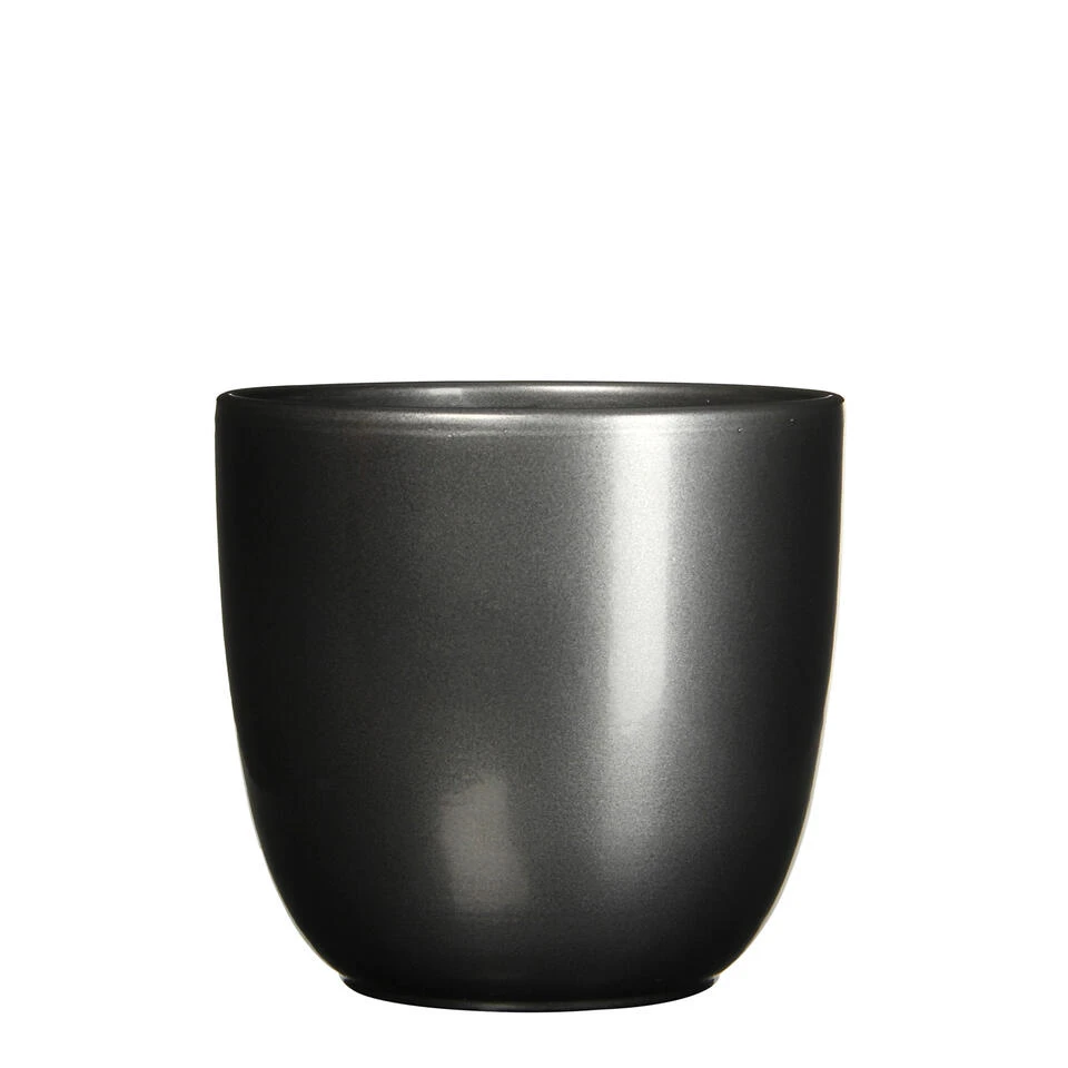 Bloempot in de kleur antraciet grijs in een mooi glans motief keramiek voor een kamerplant H23 x D25 cm. Deze ronde bloempot uit de Tusca home basics serie past altijd goed in elke huis/interieur. Gemaakt van terracotta/keramiek. Diameter: 25 cm. Hoogte: 23 cm.