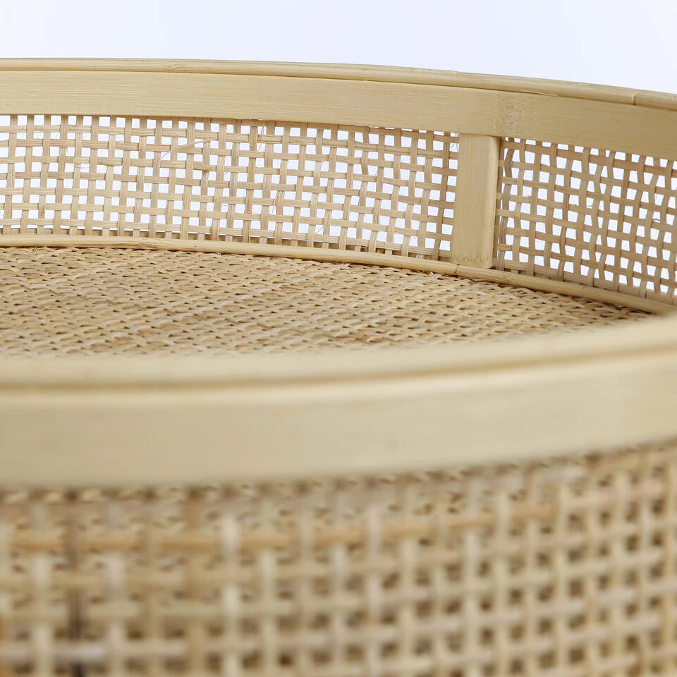 Op zoek naar een leuke bijzettafel voor op het terras of balkon? De Leandro tuintafeltjes van Mica Decorations passen door de neutrale uitstraling overal bij. Het frame is gemaakt van zwart metaal en biedt ondersteuning aan een rond blad van bamboe en rotan. Een mooie combinatie! Door de hoge rand kun je alles daarnaast veilig neerzetten, bijvoorbeeld een paar drankjes of wat leuke decoraties. De set bestaat uit twee tafeltjes die je precies onder elkaar kunt schuiven. Zo kun je, als het nodig is, van alles erop kwijt. De afmetingen van de ronde bijzettafels zijn H33 x Ø40 cm en H42,5 x Ø35 cm.