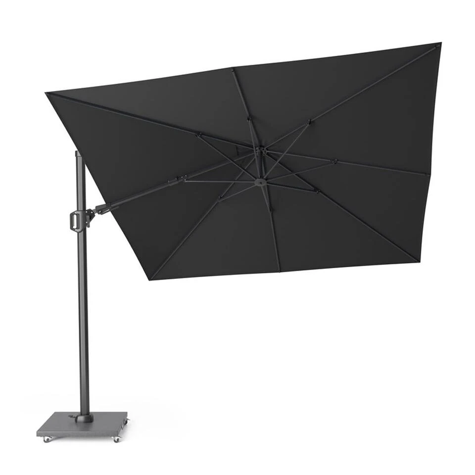 De Challenger T2 zweefparasol wordt standaard geleverd exclusief parasolvoet en parasolhoes. Wij raden u aan om gebruik te maken van een parasolvoet van minstens 90 kilogram. Deze hebben wij zowel met als zonder wielen. Ook is het mogelijk om te kiezen voor een ingraafparasolvoet. Deze heeft als voordeel dat je meer ruimte op je terras over hebt. Kortom genieten doe in de schaduw doe je met de Platinum Challenger T2 3×3 m. zweefparasol.