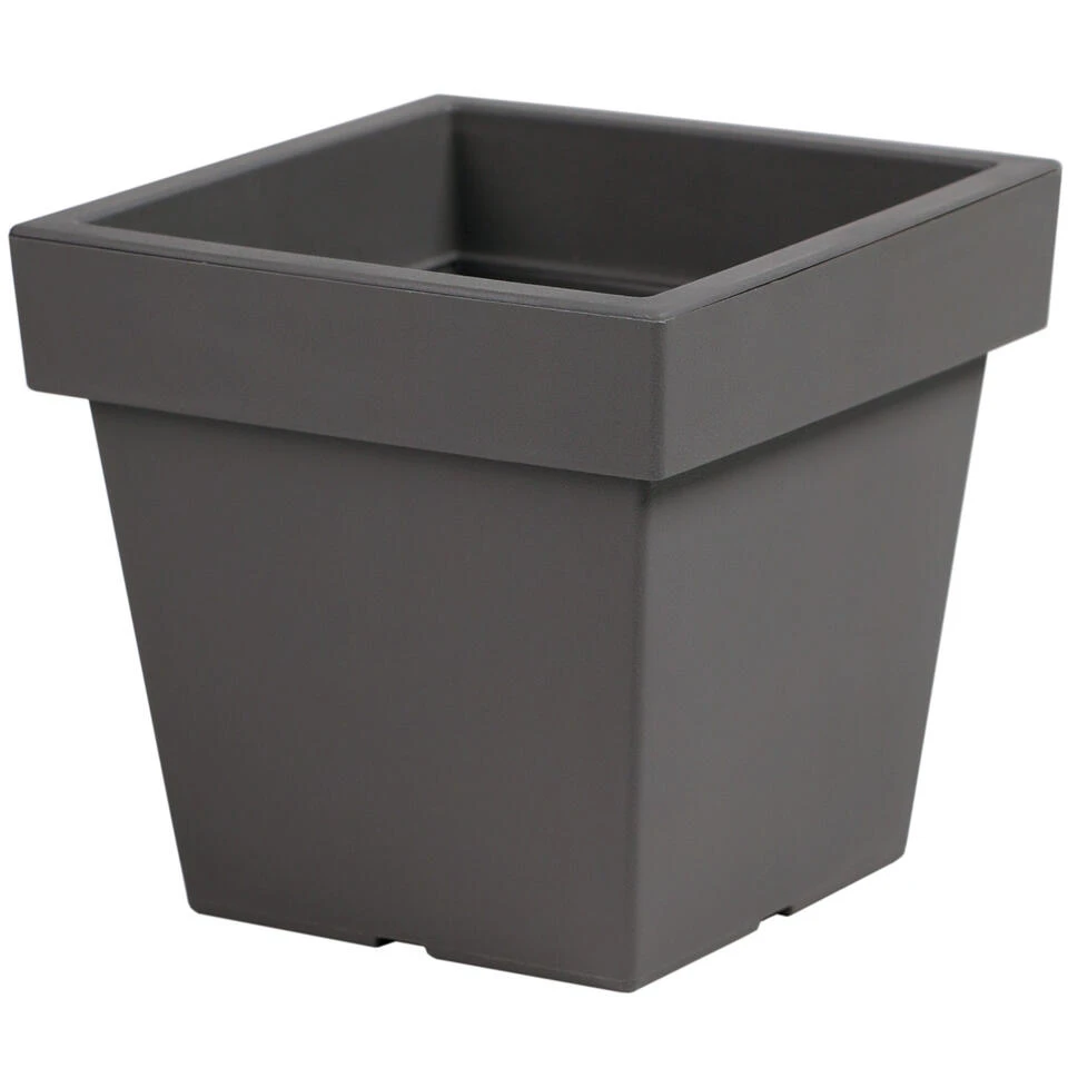 1x Kunststof vierkante bloempotten/plantenpotten 24 cm lichtgrijs. Formaat: lengte: ca 23,4 cm. Breedte: ca 23,4 cm. Hoogte: ca. 22 cm. Inhoud: 8 liter. Materiaal: kunststof. De bloempotten hebben een gat in de bodem waardoor het overtollige water wegloopt. De potten zijn geschikt voor binnen en buiten gebruik.