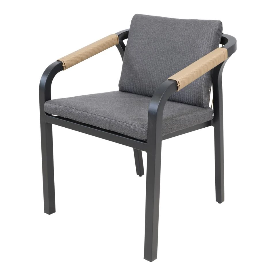 De Rimini terrasstoel in grijs is neutraal, chique en passend binnen iedere tuin. Rimini is afkomstig van het geliefde woonmerk Les. Deze tuinstoel heeft een afmeting van 58x60x75cm en is perfect geschikt voor iedereen die opzoek is naar een chique en comfortabele uitstraling. Het frame is gemaakt van aluminium in mat zwart. Om de leuningen zit TPU wicker met een gaaf touw motief. Rimini is voorzien van twee comfortabele kussens in het lichtgrijs voor extra zitcomfort. Zo kan er uren op deze terrasstoel worden nagetafeld op een mooie zomeravond. Rimini is ook verkrijgbaar al barkruk en bartafel. Combineer dit geheel voor eenheid binnen de tuin. Plaats Rimini onder uw veranda of op het terras en geniet van gezellige avonden met vrienden en familie.