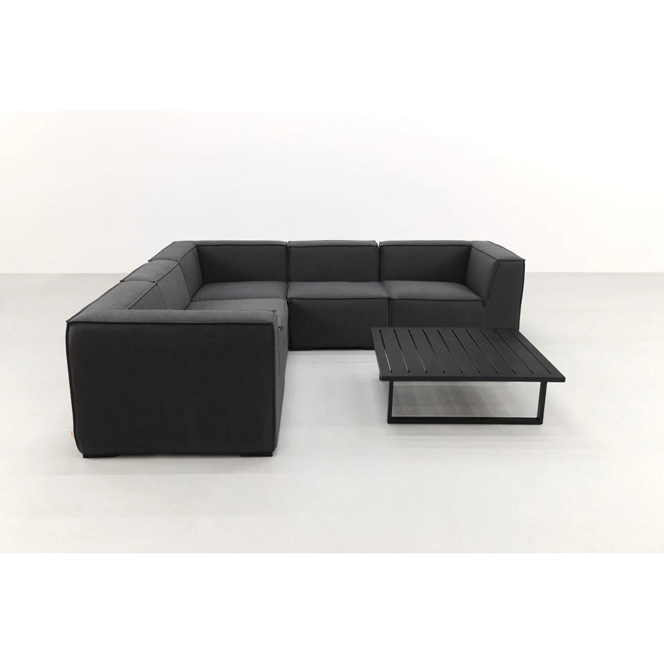 De Liberty Sunbrella loungeset bestaat uit allemaal losse elementen. Bij dit model zijn dat 3 hoekelementen, 2 middenelementen en 1 Cuba loungetafel. De decoratie artikelen op de afbeeldingen zijn niet inbegrepen.