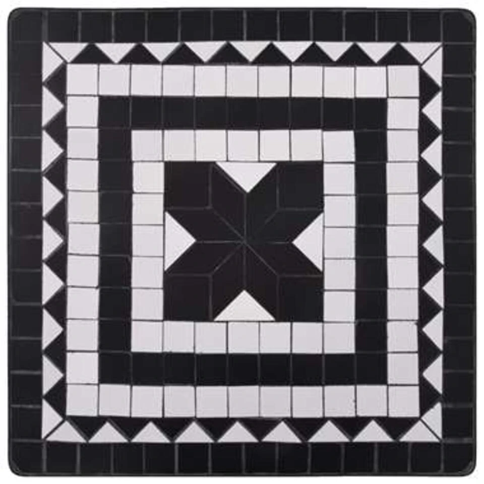 - Materiaal: gepoedercoat ijzeren frame en keramische tegels op zittingen en tafelblad
