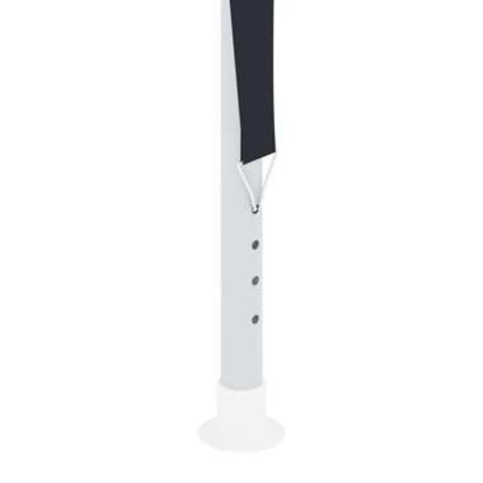 - Materiaal: 90 g/m² PE (100% polyethyleen) en staal